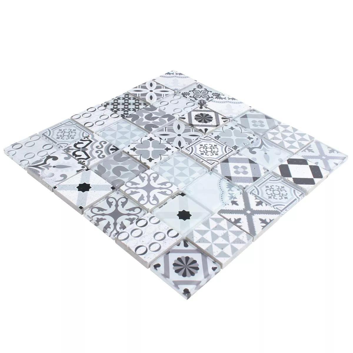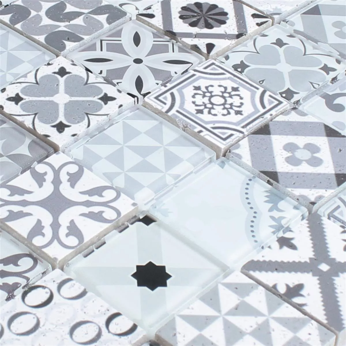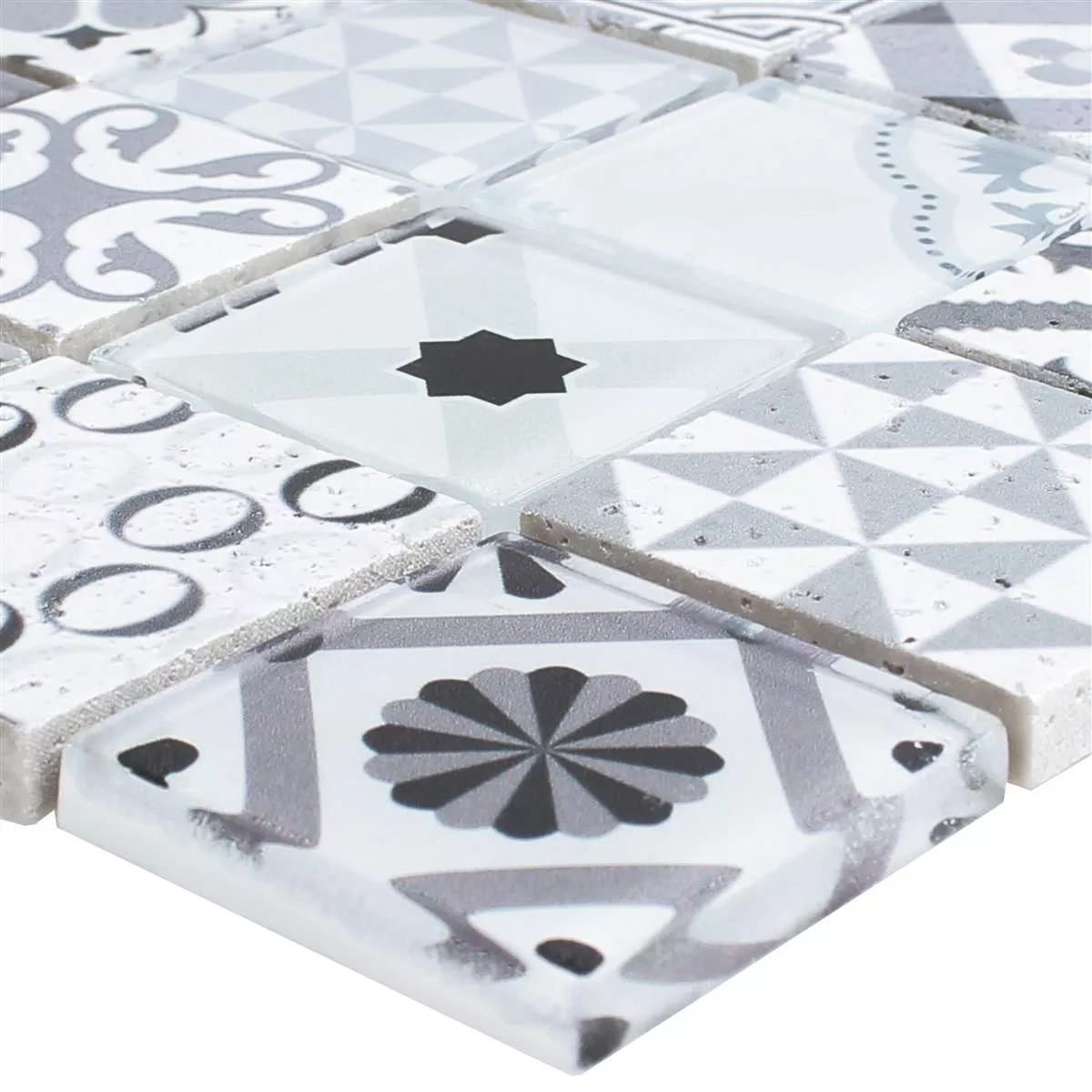 Sample Glas Natuursteen Mozaïektegel Vintage Anopolis Wit Grijs