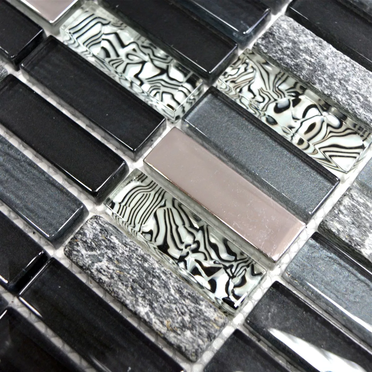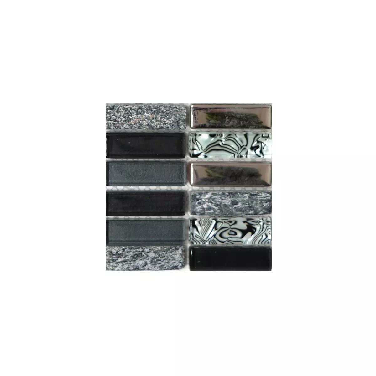Sample Glas Natuursteen Mozaïektegels Magia Zwart Brick