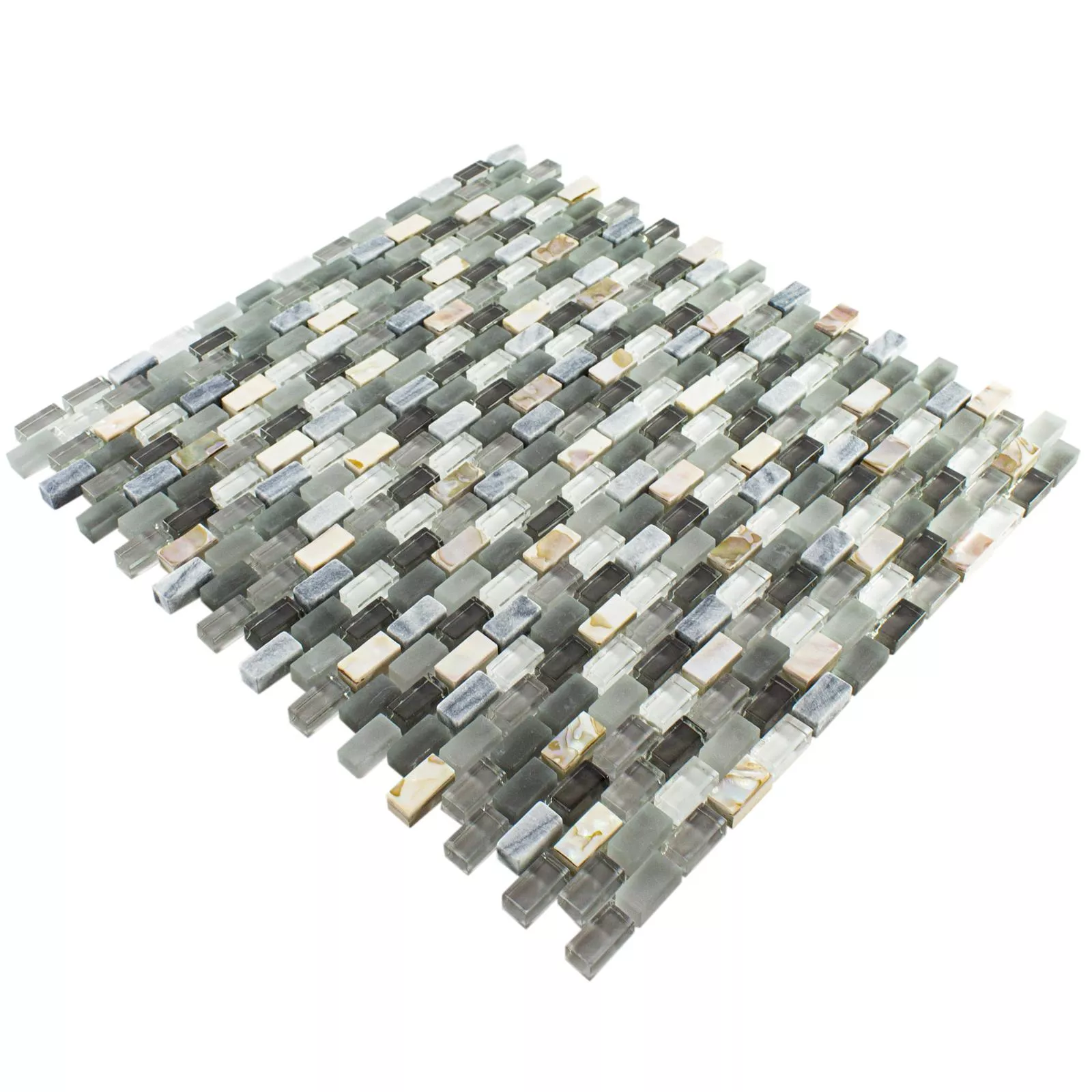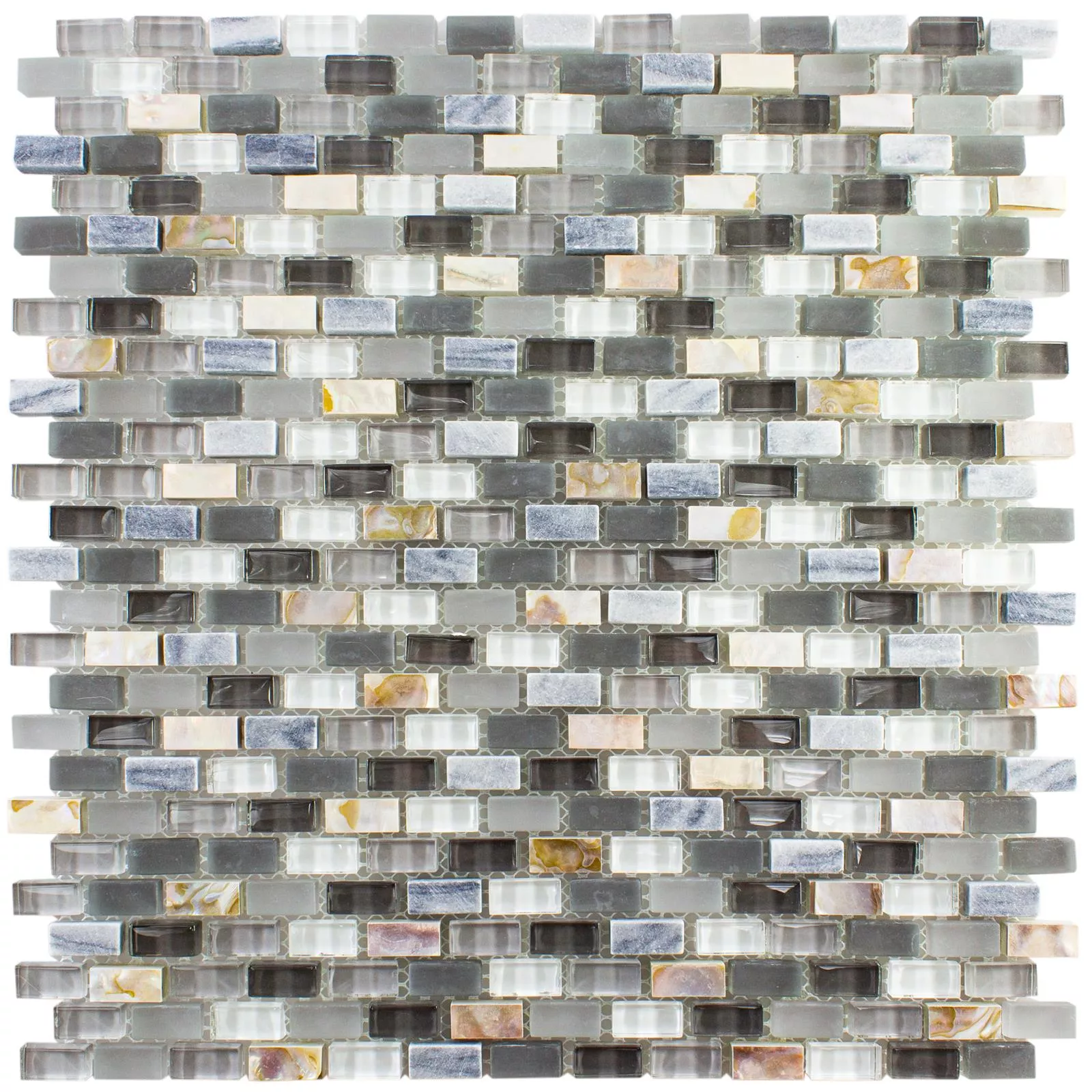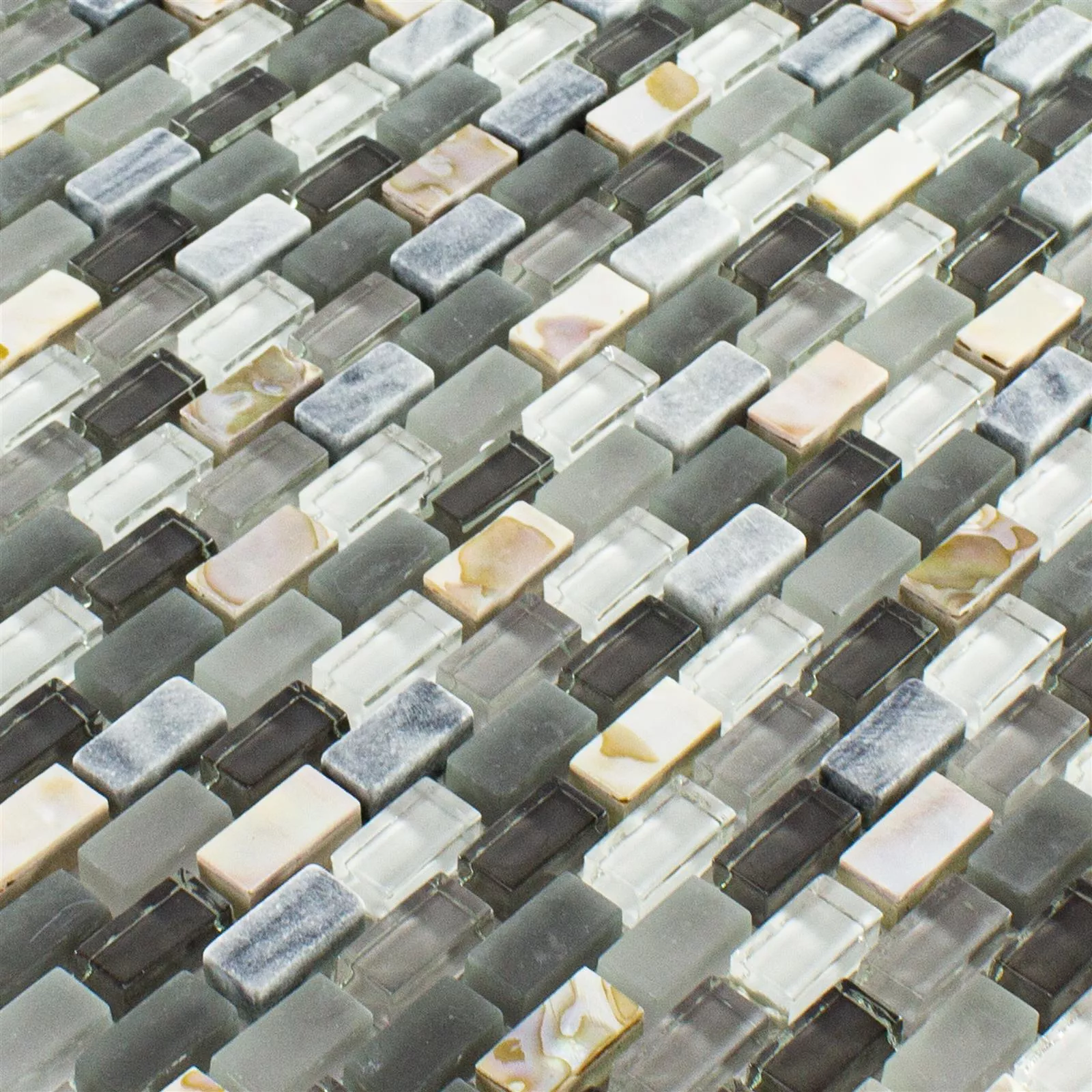 Sample Glas Natuursteen Paarlemoer Mozaïek Admiral Zwart Grijs