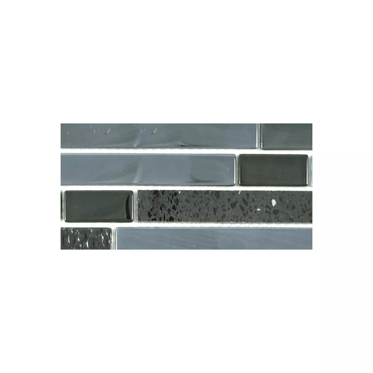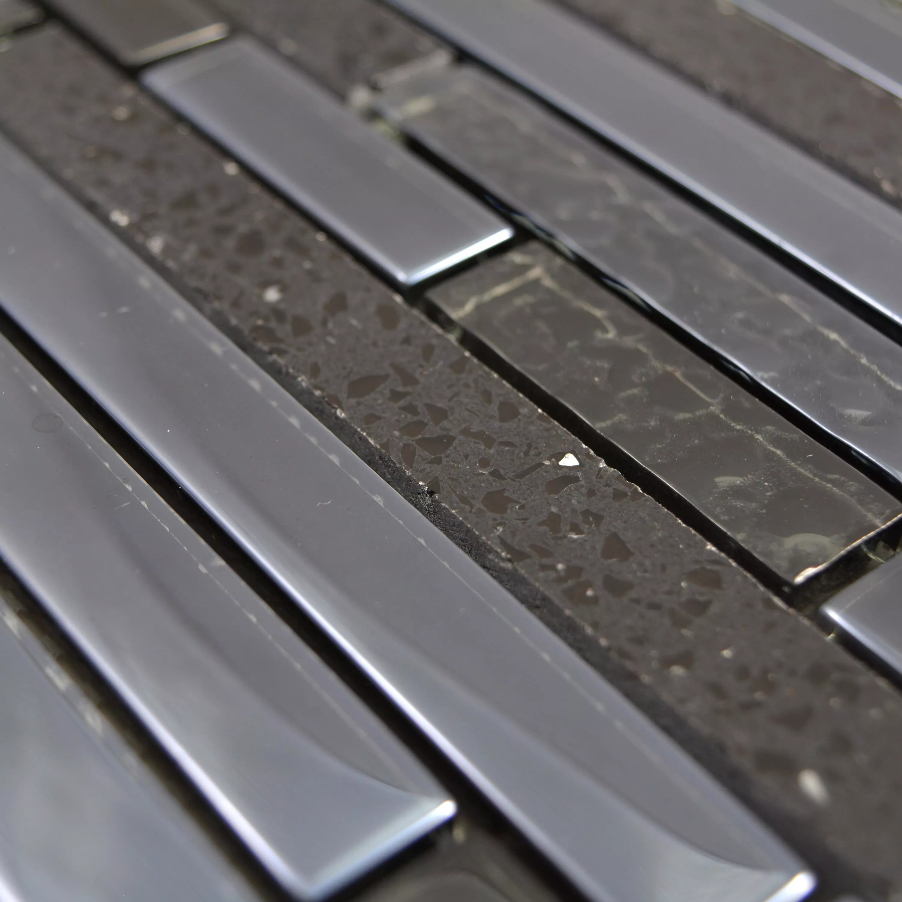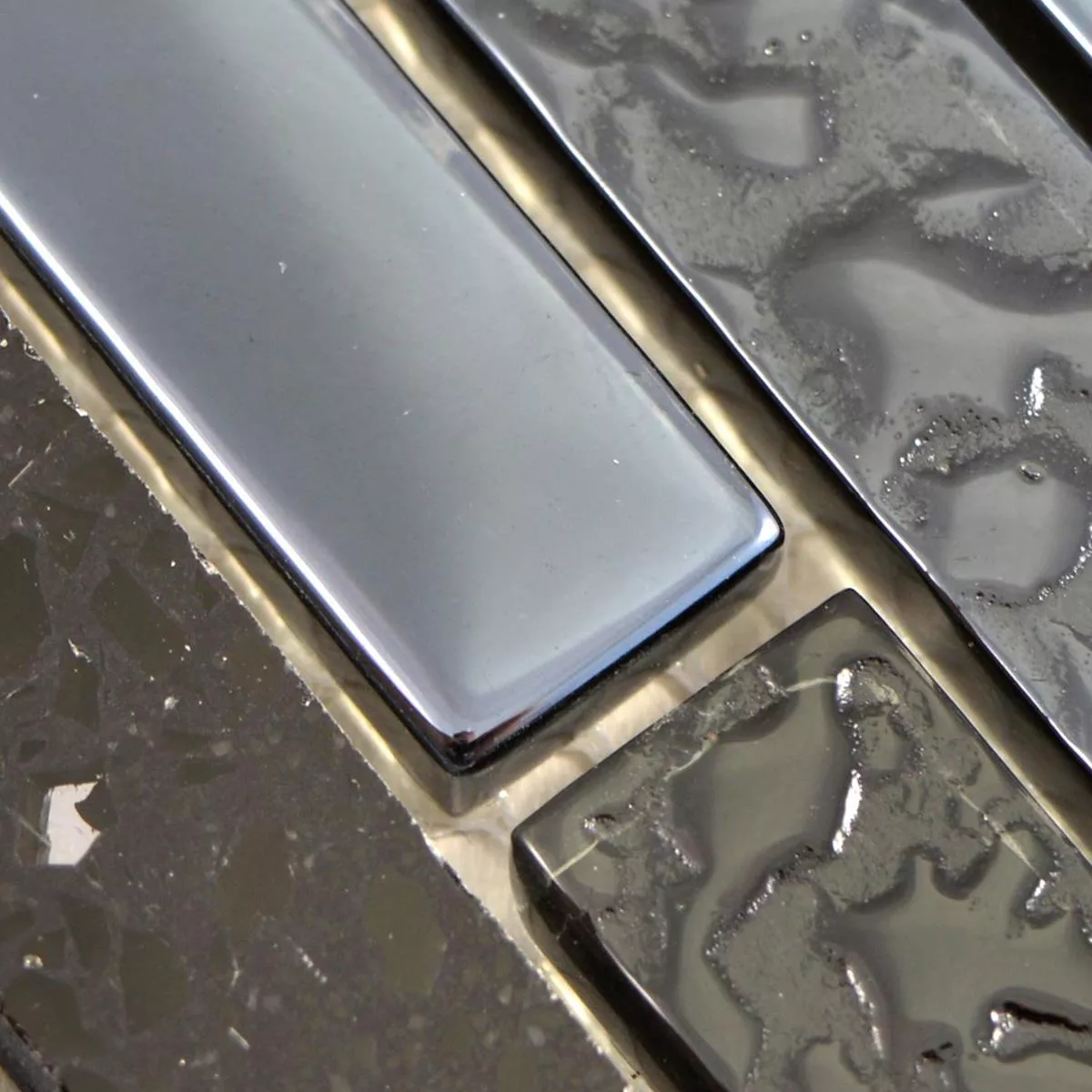 Sample Glas Steen Roestvrij Staal Mozaïek Wilmont Zwart Zilver