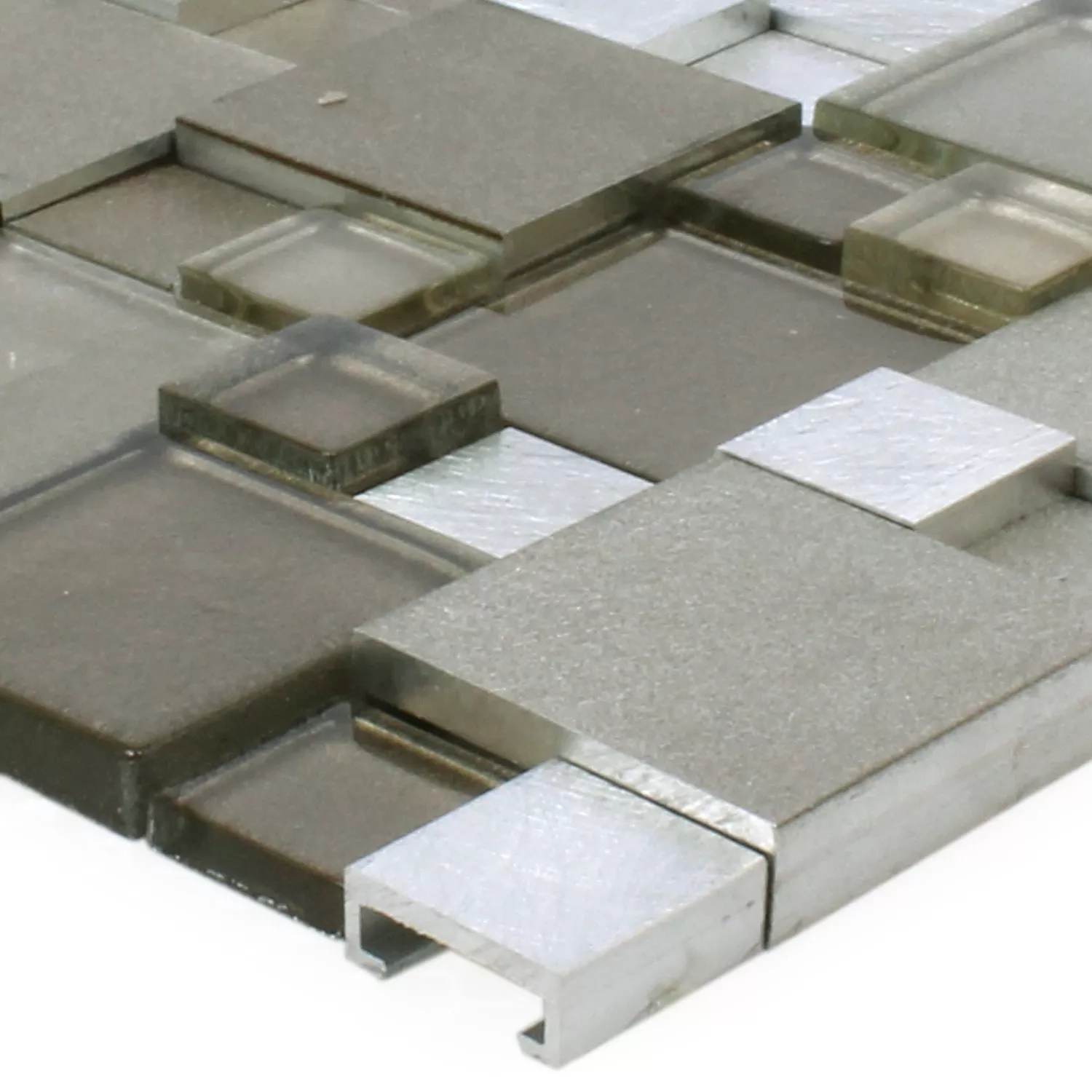 Sample Mozaïektegel Glas Aluminium Condor 3D Bruin Mix