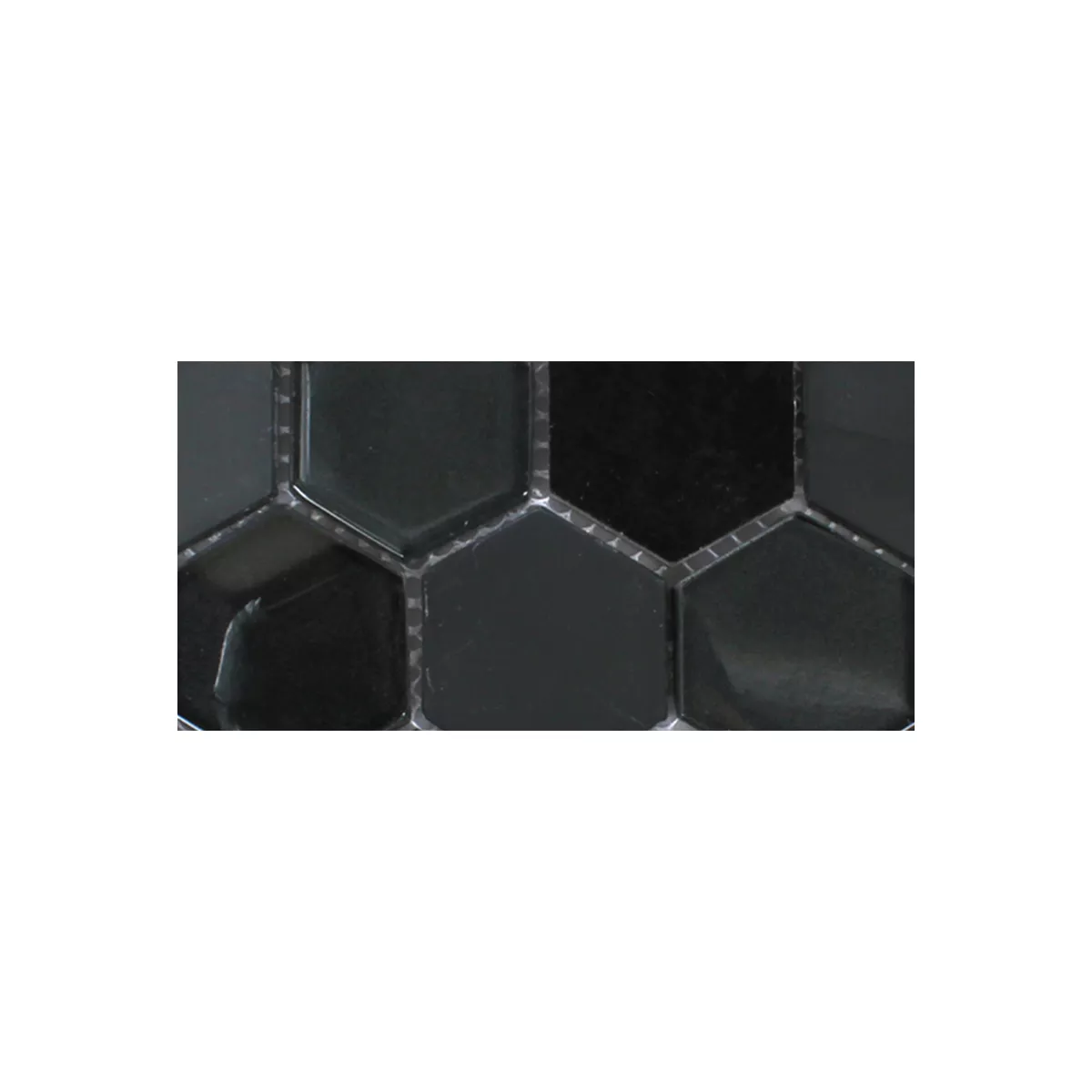 Sample Mozaïektegel Hexagon Glas Natuursteen Zwart 3D