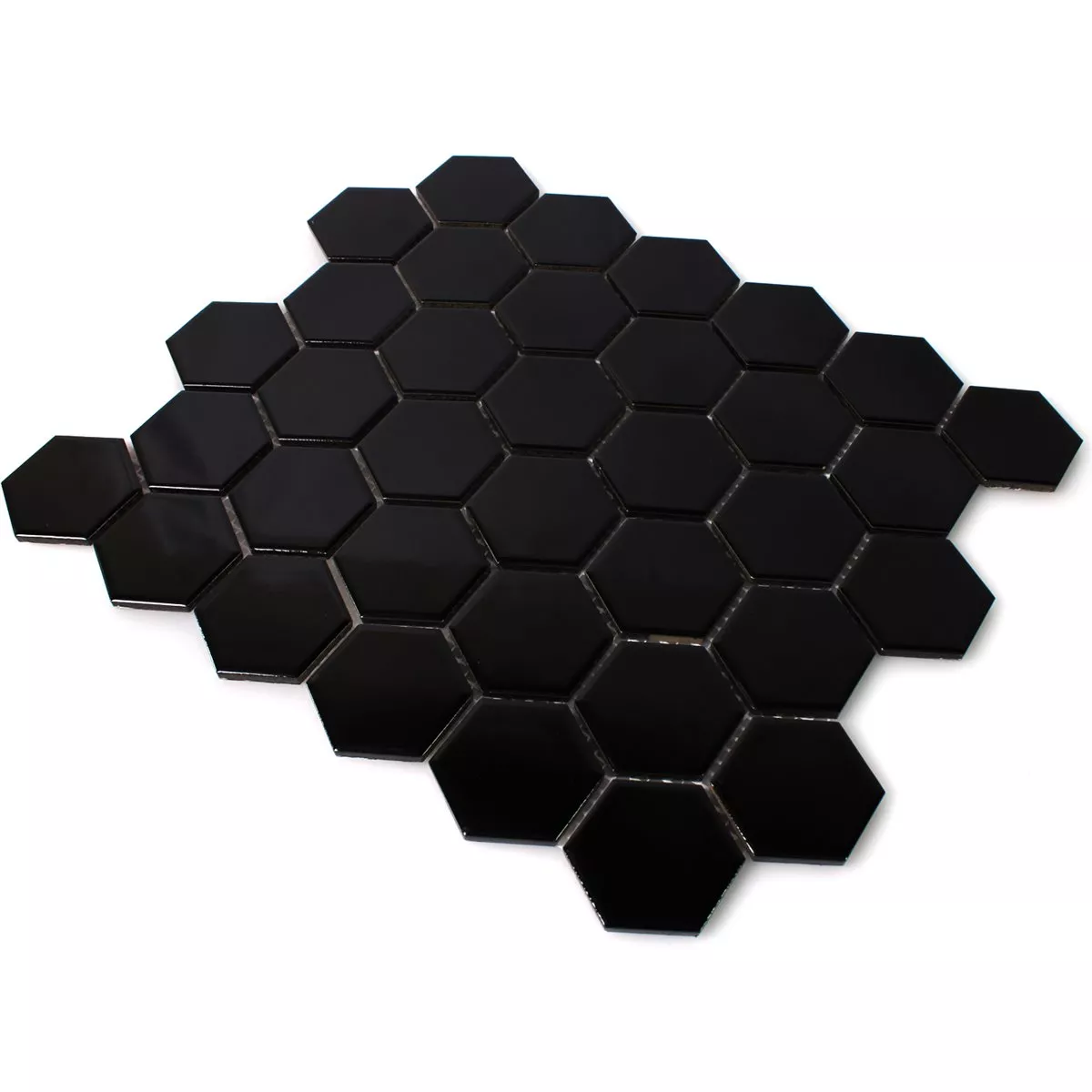 Sample Mozaïektegel Keramiek Hexagon Zwart Glanzend