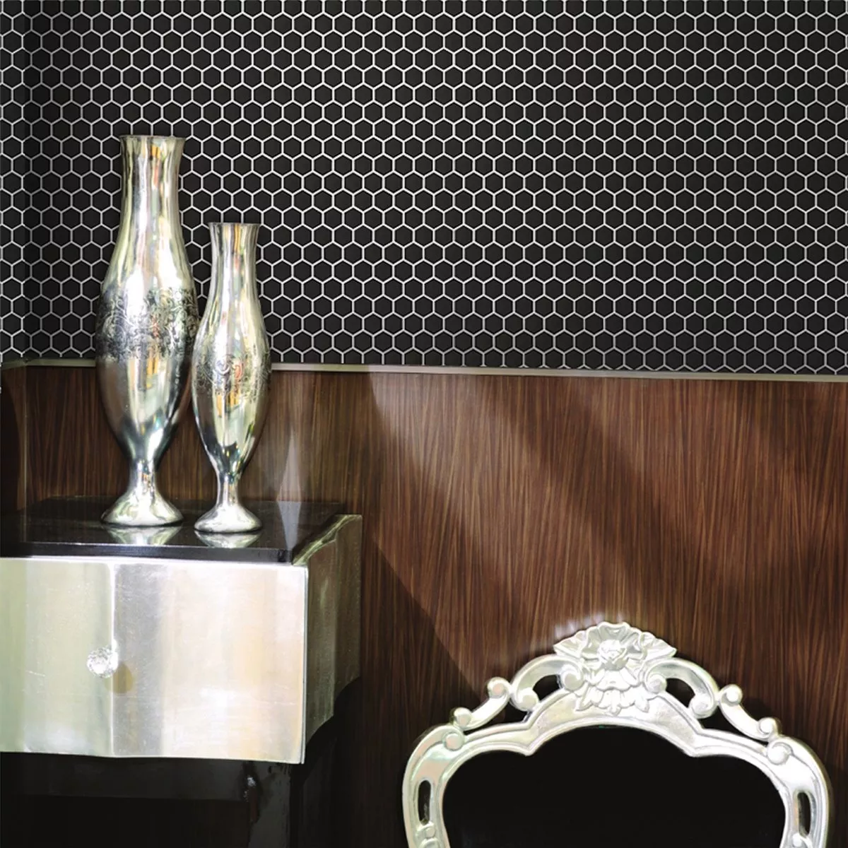 Sample Mozaïektegel Keramiek Hexagon Zwart Mat H23