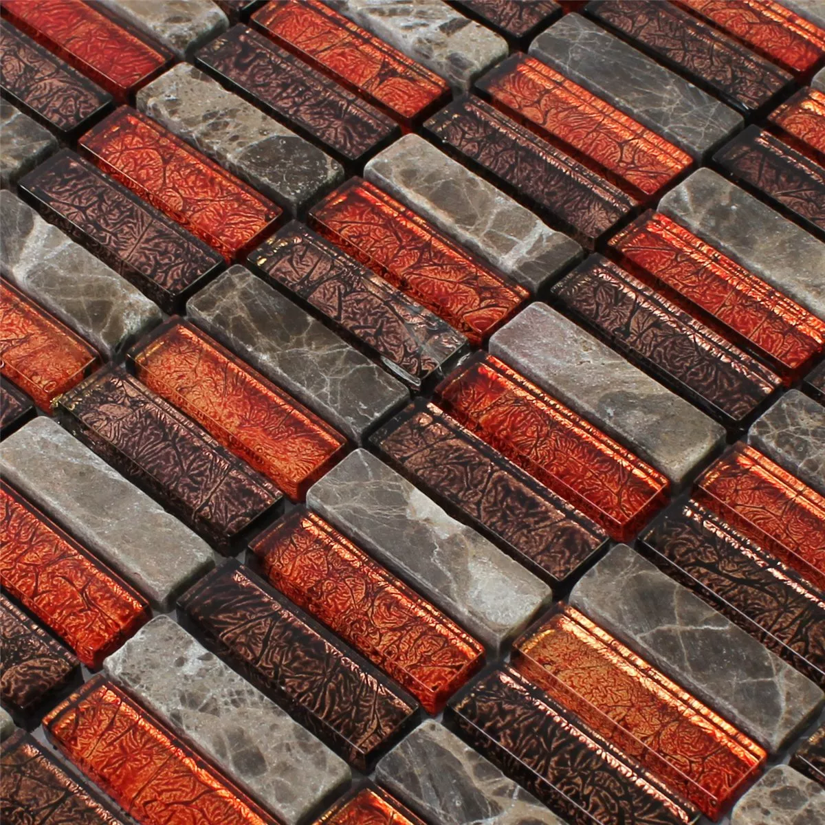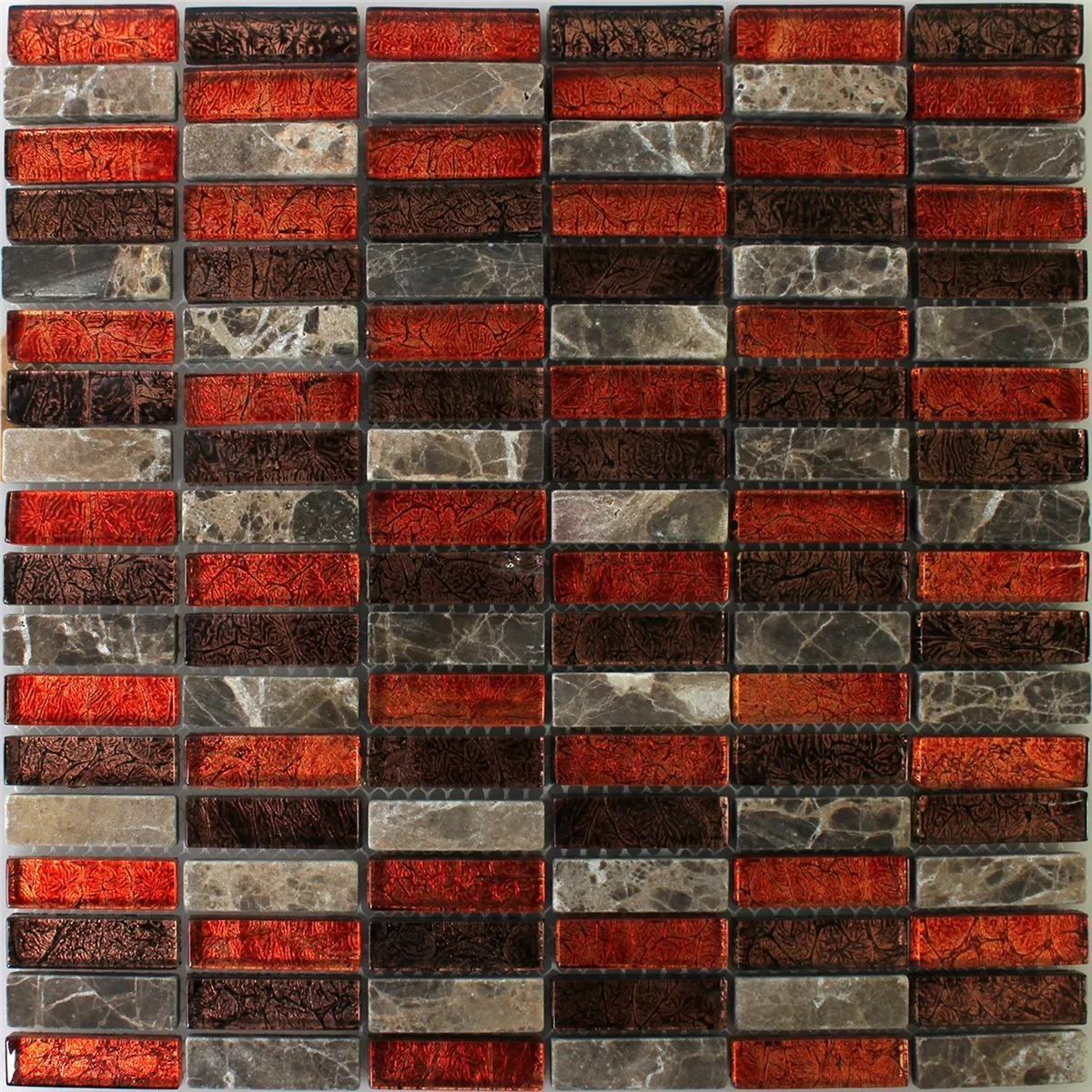 Sample Mozaïektegel Natuursteen Glas Root Bruin Stick