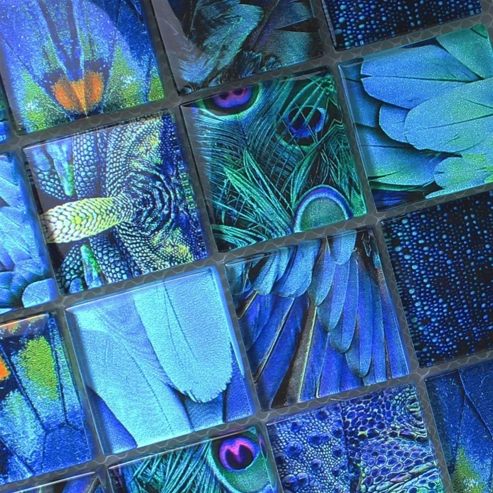 Sample van Glasmozaïek Tegels Peafowl Blauw