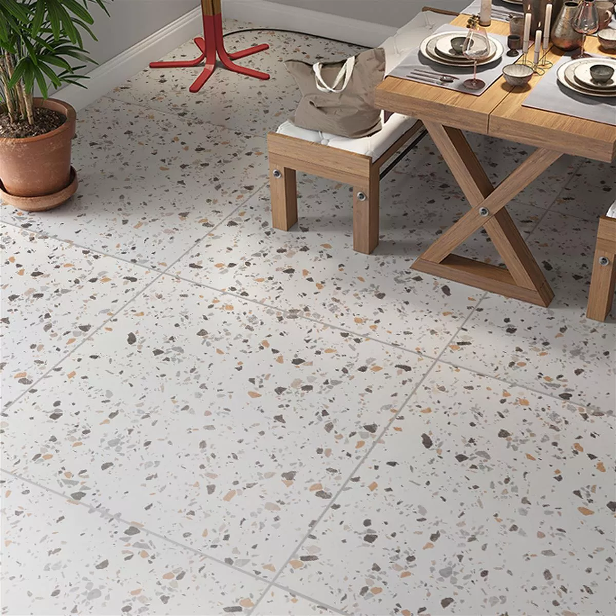 Het matte oppervlak benadrukt niet alleen de retro- en steenlook, maar benadrukt ook de geglazuurde coating, die niet alleen visueel aantrekkelijk is, maar ook in combinatie met vloerverwarming kan worden gebruikt.