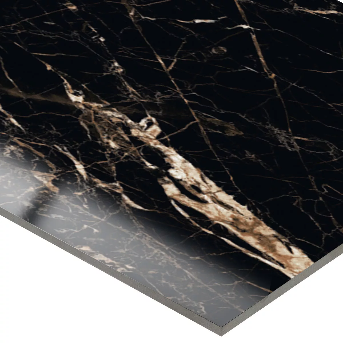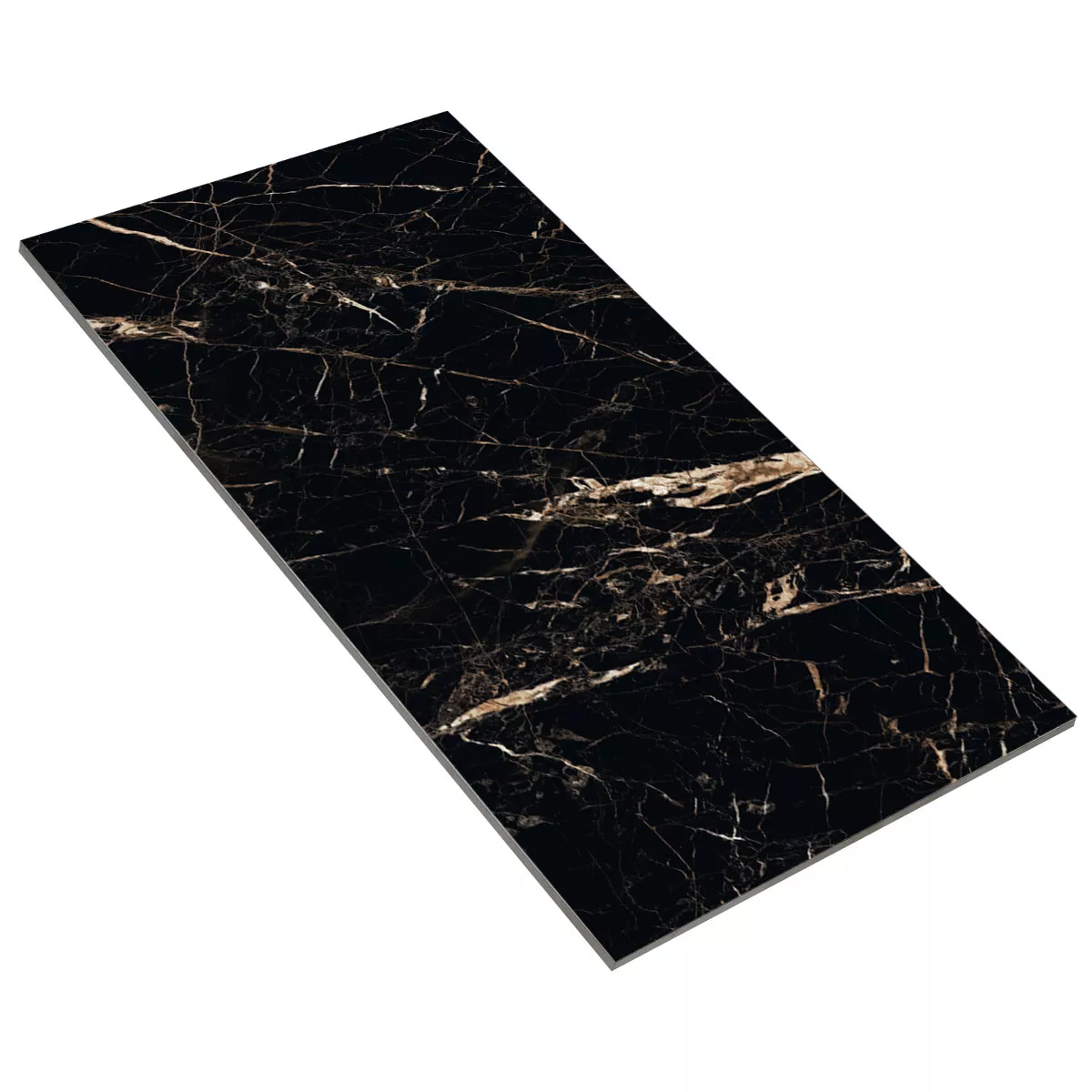 Vloertegels Trento Marmerlook Zwart Goud Glanzend Glanzend 60x120cm