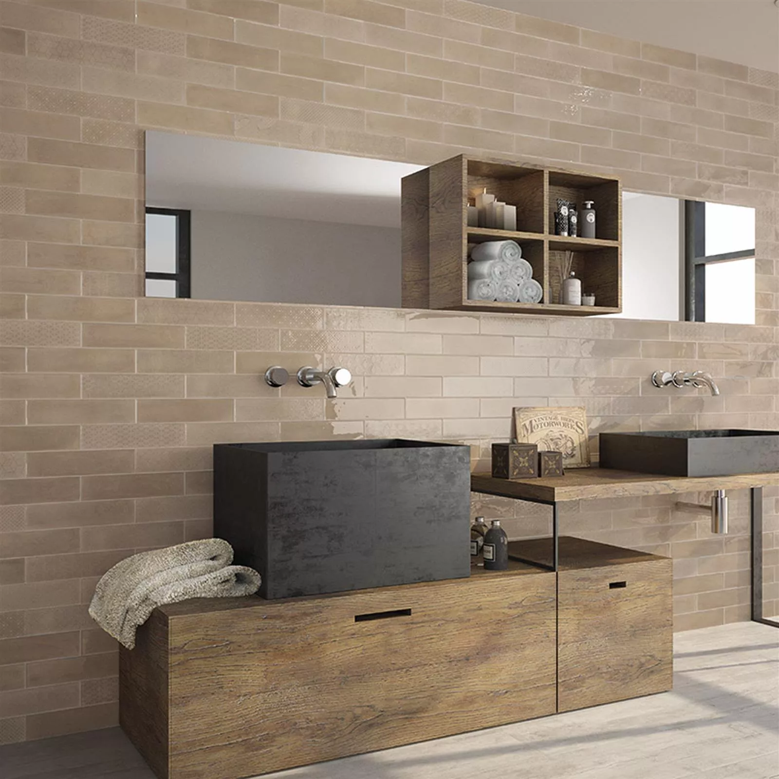 Wandtegels Conway Gegolfd 7,5x30cm Lichtbruin