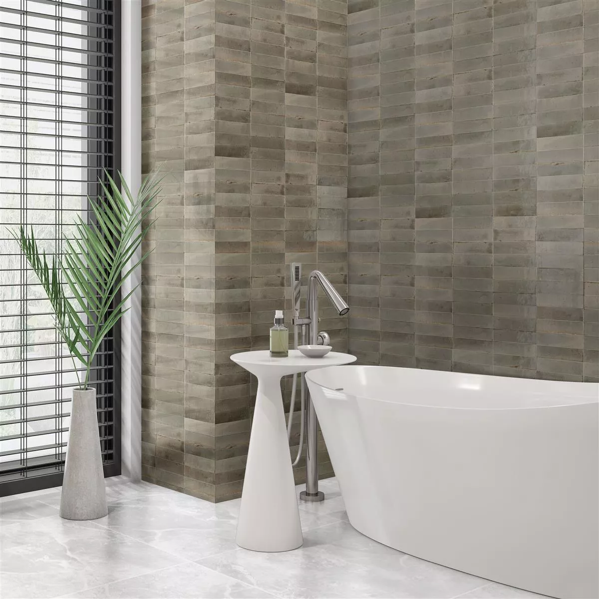 Wandtegels Laguna Glanzend Gegolfd Mokka 6x24cm