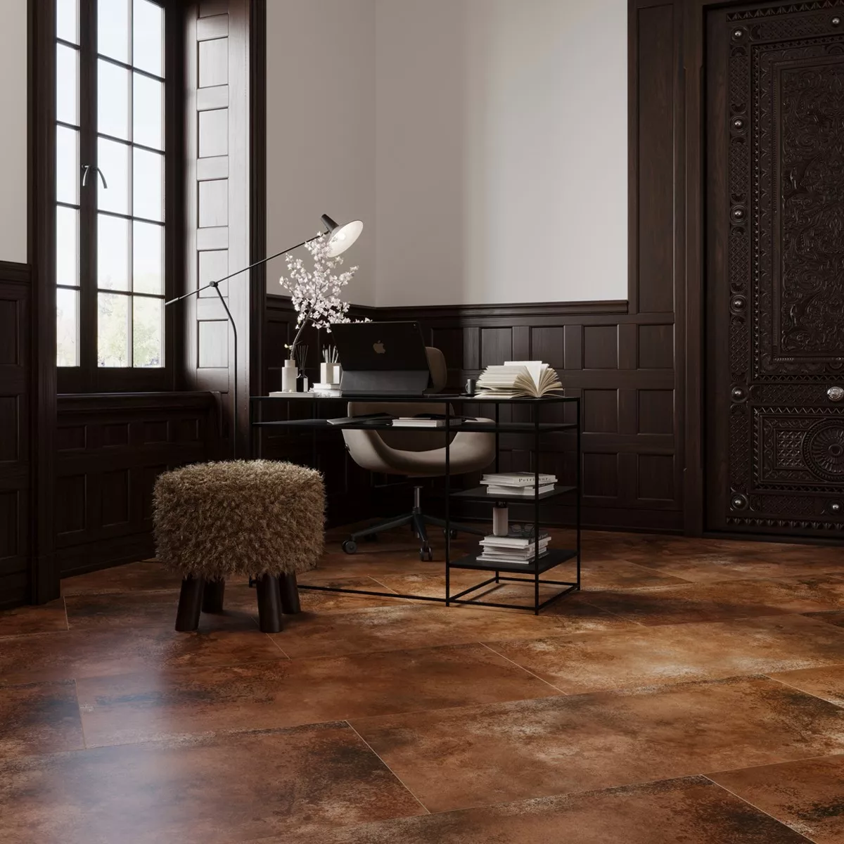 Le carrelage de sol en grès cérame Oregon allie un design moderne à une grande fonctionnalité. Sa couleur marron chaude à l'aspect métallique confère à chaque pièce une touche noble et en même temps industrielle. Grâce à la surface émaillée mate, un aspect élégant est créé qui crée une atmosphère élégante dans le salon ainsi que dans la cuisine ou la salle de bain.
