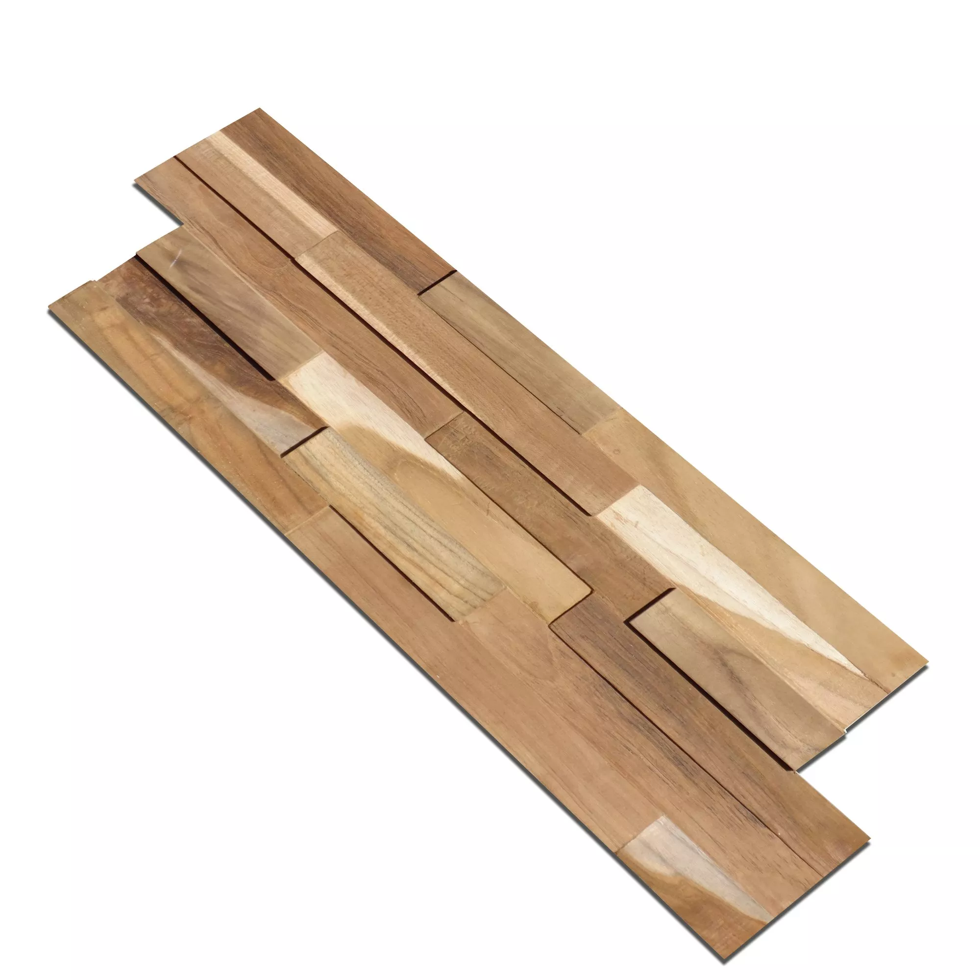 Le revêtement mural des parements bois Luxembourg Natura est composé de dalles individuelles de 15 x 60 centimètres. La brique de parement est constituée de baguettes de bois qui créent un revêtement mural rustique. Pour l'artisan, le traitement de petits bâtonnets de bois serait fastidieux, c'est pourquoi les bâtonnets étaient pratiquement assemblés sur des tuiles. Cela rend le travail facile. Le naturel du matériau s'exprime parfaitement à travers les différents grains et nuances du bois. Mère nature fascine par les différences. Pour le spectateur, la brique de parement apparaît en 3D.