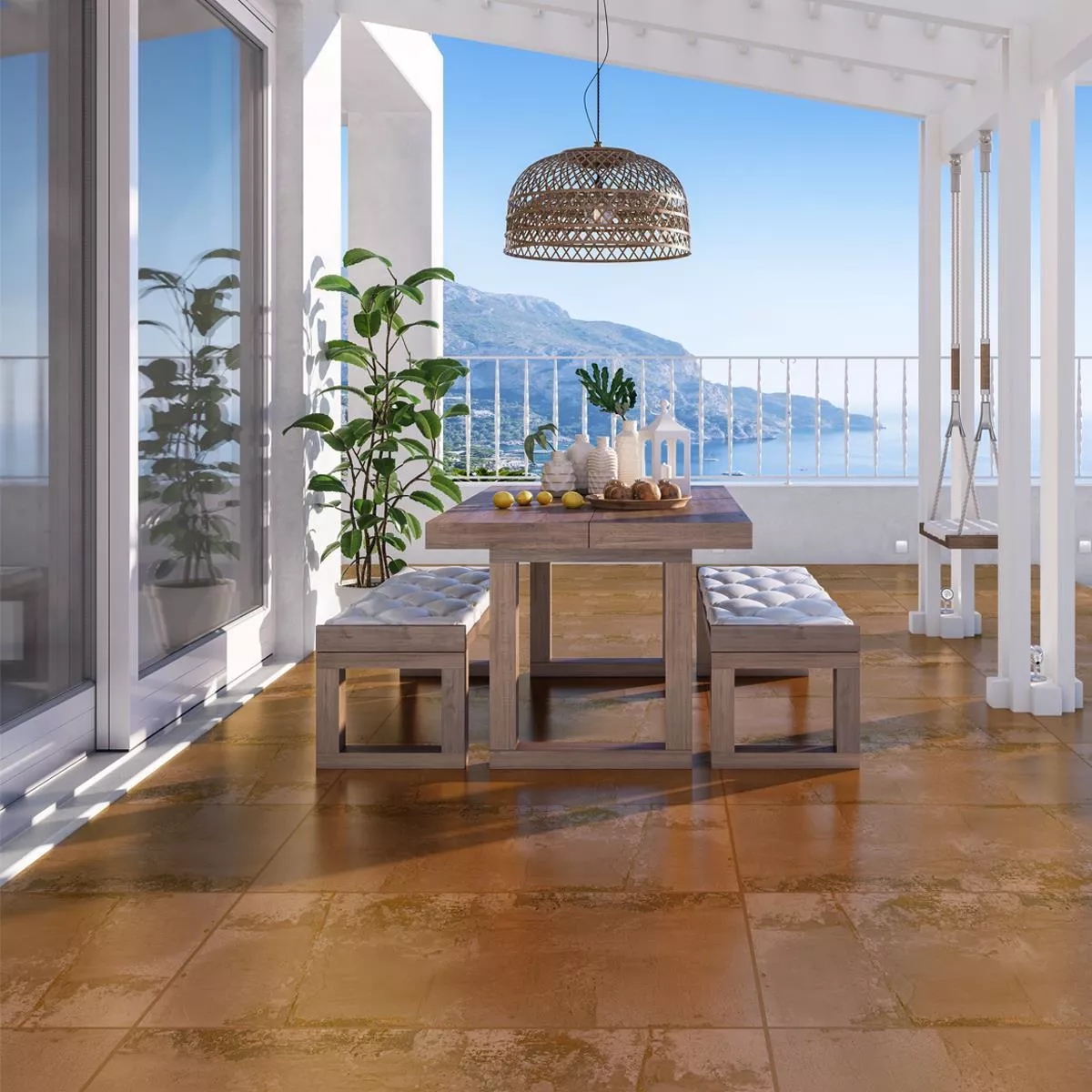 Die Terrassenplatten Feinsteinzeug Calabria Metalloptik Braun sind die perfekte Wahl für eine moderne und widerstandsfähige Gestaltung von Außenbereichen wie Terrassen, Balkonen und Gehwegen. Diese hochwertige Bodenfliese überzeugt durch ihre robuste Bauweise und die elegante Metalloptik in der Farbe Braun. Mit einer Größe von 60 x 120 cm und einer Stärke von 20 mm bieten diese Platten sowohl Langlebigkeit als auch Widerstandsfähigkeit. Ein Paket enthält eine Platte, die eine Fläche von 0,72 m² abdeckt.